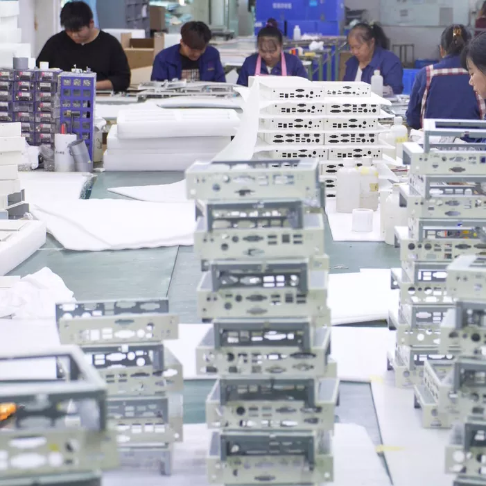 Semua cangkerang suis dilengkapkan pada barisan pengeluaran profesional, daripada pemotongan, lenturan, kimpalan kepada penyemburan sehenti yang boleh dikawal, untuk memastikan kualiti dan penghantaran.